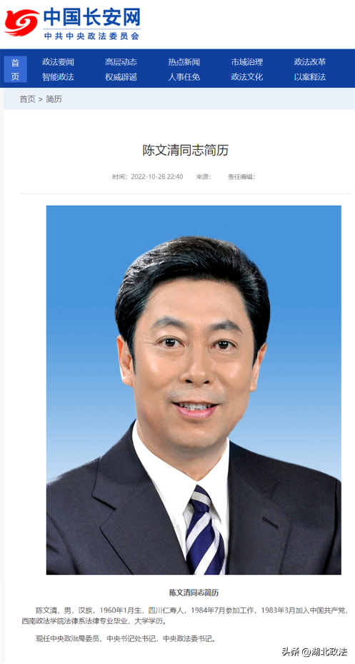 中國長安網(wǎng)10月28日晚發(fā)布的消息顯示,陳文清已任中共中央政法委員會書記。
